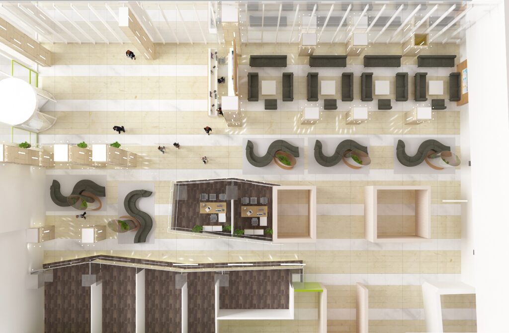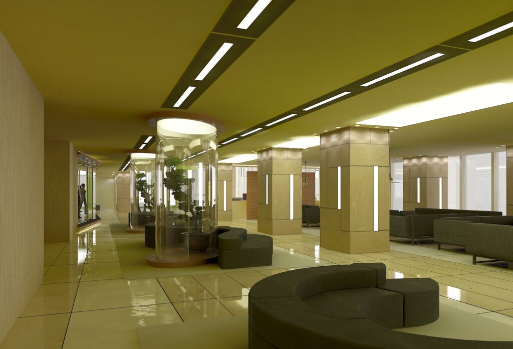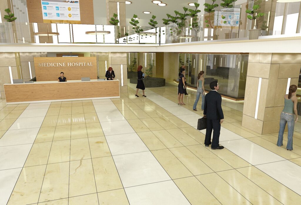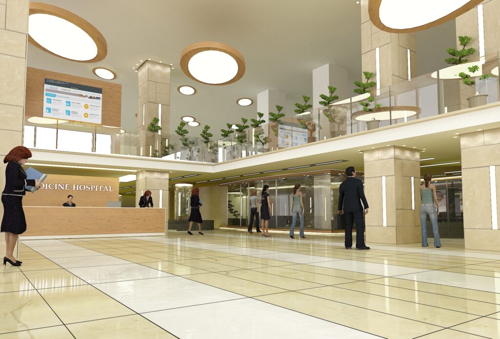 Sağlık sektöründeki uzmanlığımızı yansıtan, hasta psikolojisini ve operasyonel verimliliği merkeze alan modern bir hastane lobi ve karşılama alanı projesi. Ferah galeri boşlukları, doğal ahşap detaylar ve geniş mermer yüzeylerin uyumuyla kurumsal güven hissini pekiştiriyoruz.